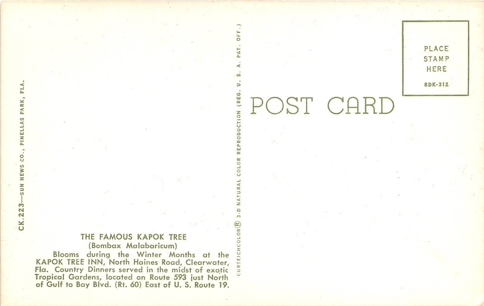 Clearwater Florida~Kapok Tree@ Kapok Tree Inn~People on Sidewalk~1950s Postcard