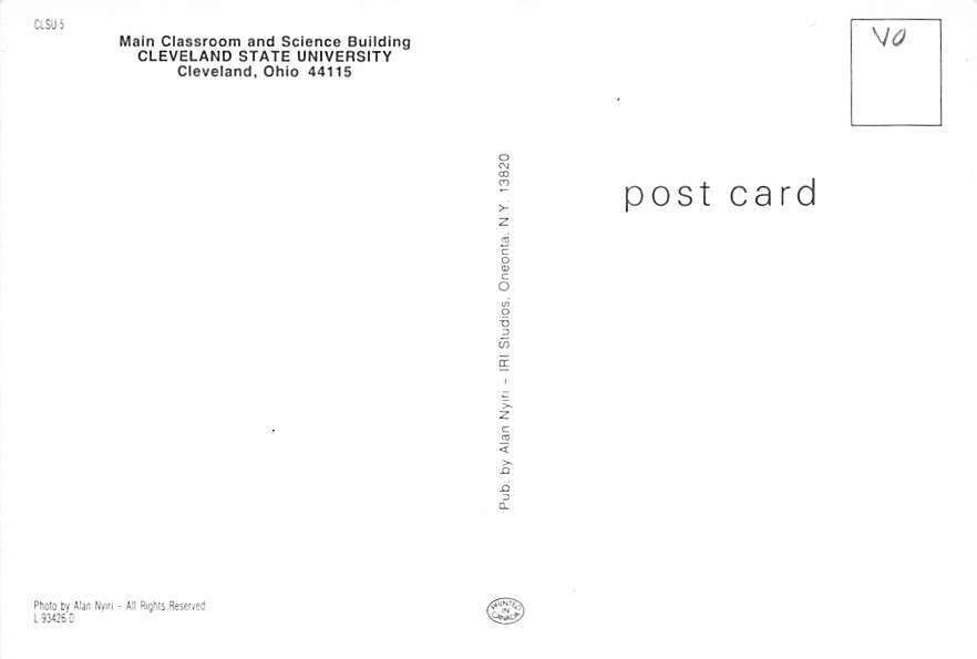 Cleveland State University, Cleveland, Ohio Postcard Grade: 1 Size: Continental Size - approximately 4 Inch x 6 Inch (15 cm x 10.5) Grading Scale: Grade 1 = Perfect corners Grade 2 = Very Minimal corner wear, ... Read More