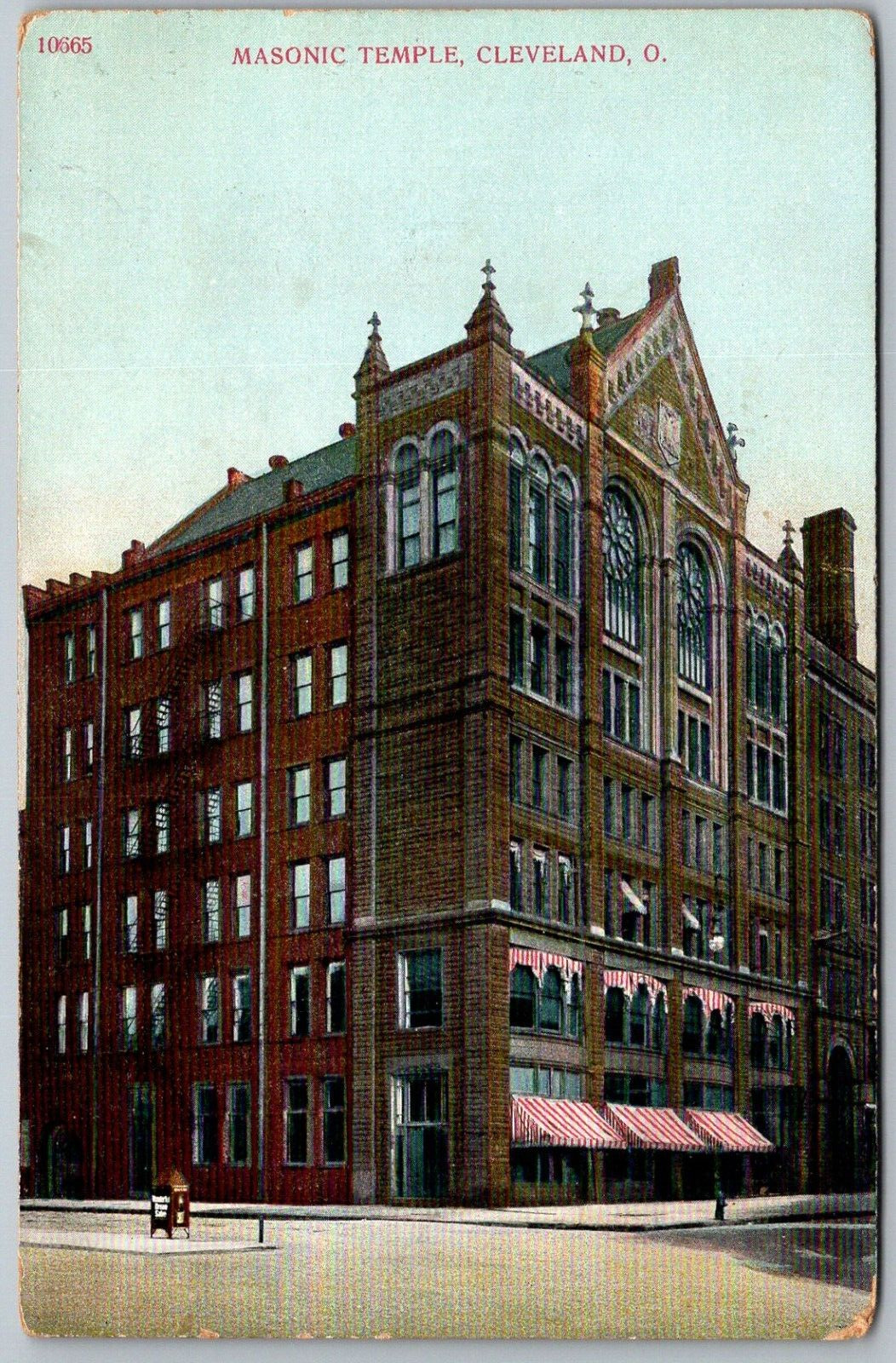Cleveland Ohio c1910 Postcard Masonic Temple Striped Awnings Mailbox