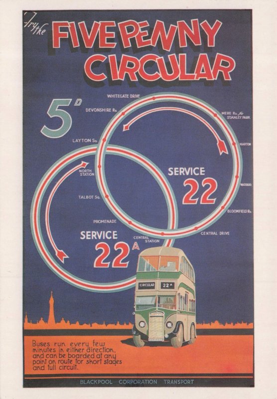 Cleveleys To Lytham Bus Advertising 1936 Poster Postcard