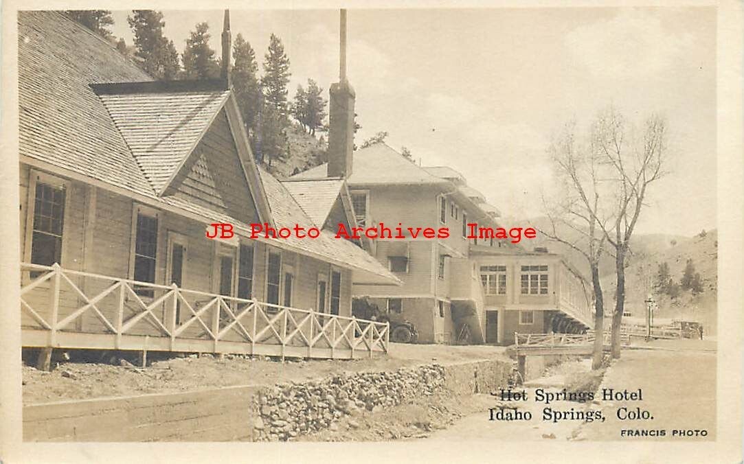 CO, Idaho Springs, Colorado, RPPC, Hot Springs Hotel,Exterior View,Francis Photo Product Photo Click Image for Larger Preview Product Information This is a nice vintage early real photo postcard showing a scene of t ... Read More