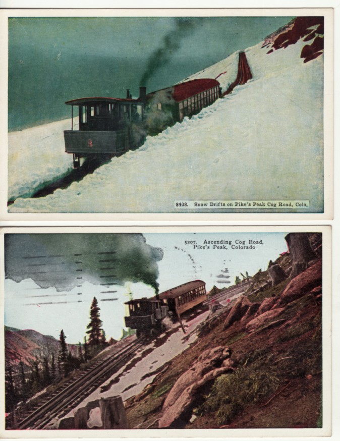 CO PIKE'S PEAK COG ROAD 2 postcards RAILROAD, TRAIN