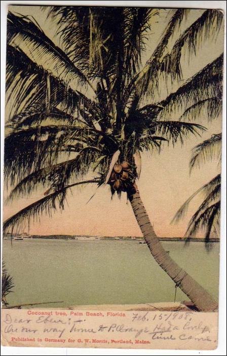 Coconut Tree, Palm Beach Fla PM 1903 / Gd / Printed Grading of Postcards MINT (M): Perfect condition, no apparent blemishes, flaws, postally unused, may have some writing on back. NEAR MINT (NM): Like new, image ... Read More
