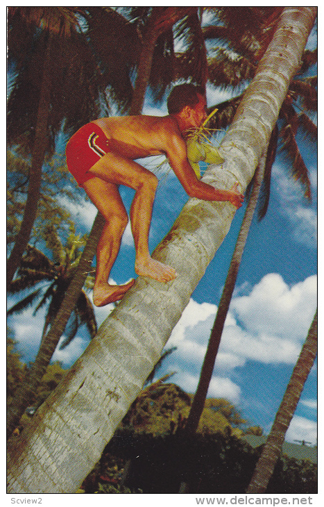 Cocopalm Climber, Hawaii, 40-60s :: Antique Postcard, 3.5" by 5.5", Chrome, EX