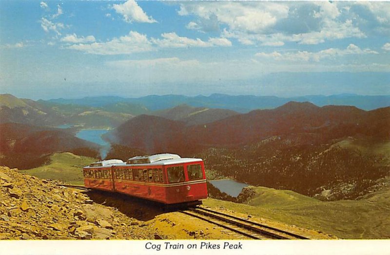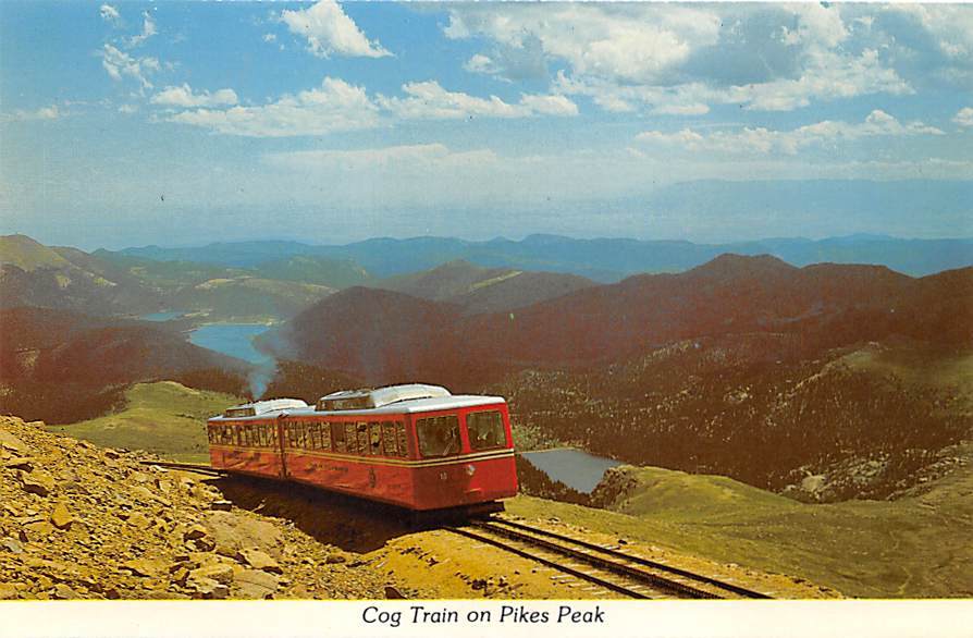 Cog Train On , Pikes Peak Postcard - View Images Grade: 1 Size: C - Continental Size Postcard - approximately 4 inch X 6 inch (15 CM X 10.5 CM) Grading Scale: Grade 1 = Perfect corners Grade 2 = Very Minimal co ... Read More