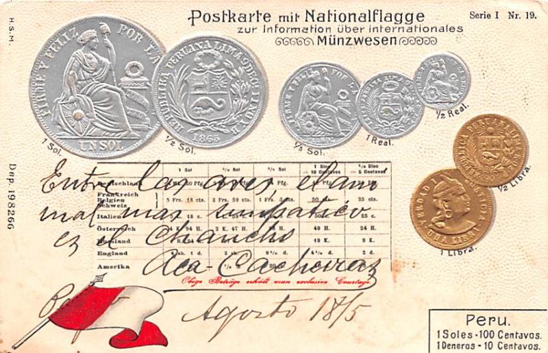 Coin Postcard, Old Vintage Antique Peru