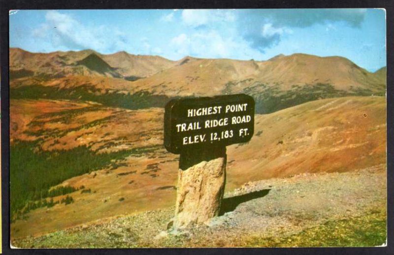 Colorado Highest Point Trail Ridge Road Elev. 12,183 ft sign Chrome