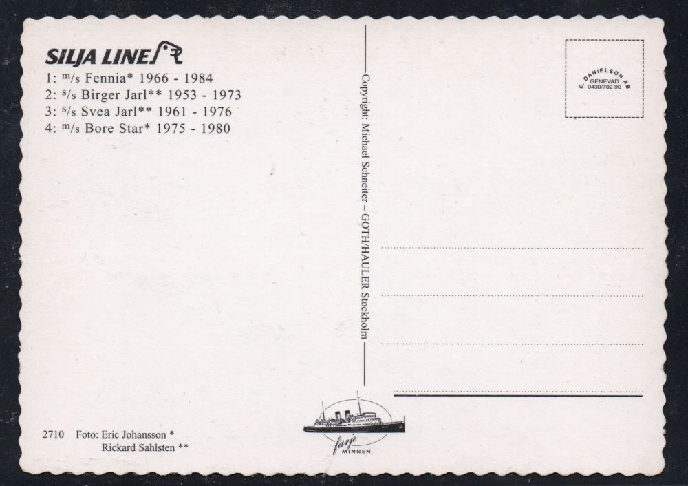 Chrome Colour Postcard showing 4 Silja Line steamships unusedFree shipping on purchases over $50 to Canada and the USA.