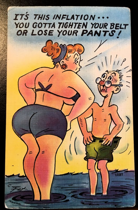 Inflation at the beach! unused, divided back, linenSeller Information