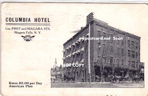 Columbia Hotel, Niagara Falls Ny Description: Postal Usage: PM 1914 Condition: Average Type: Printed Note: County: Niagara Co. > Niagara Falls (Town)