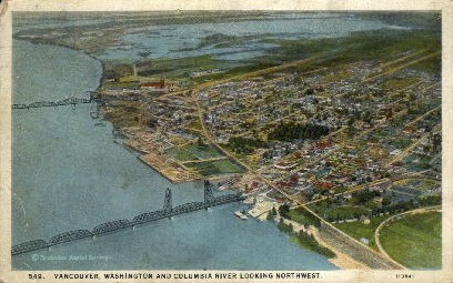 Columbia River & City View - Vancouver, Washington Postcard - 1930 Missing Stamp