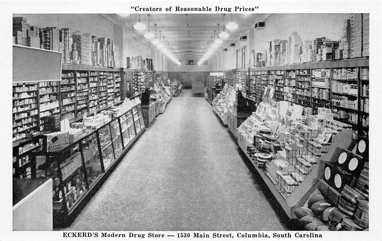 Columbia South Carolina 1940s Postcard Eckerd's Drug Store Interior .. Ohio residents add 7.25% sales tax. If purchasing multiple items wait for a combined invoice before paying. Powered by SixBit's eCommerce Solution