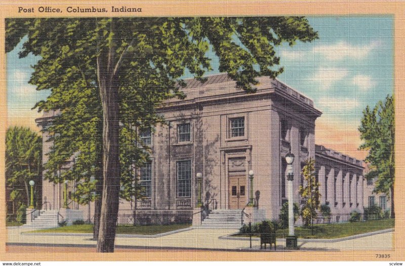 COLUMBUS, Indiana, 1930-1940s; Post Office :: Postcard, 3.5" by 5.5", Linen