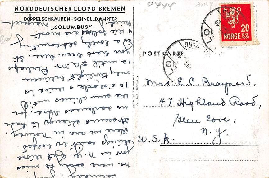 Columbus Norddeutscher Lloyd Ship Postcard ,