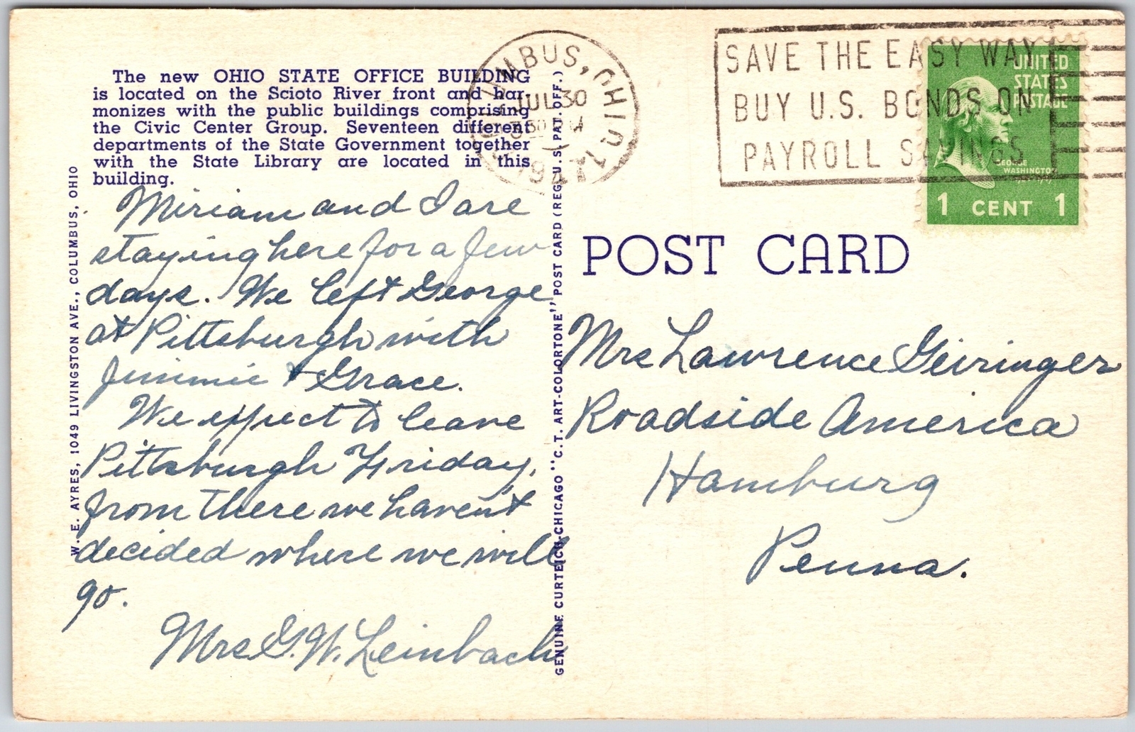 Columbus Ohio OH, 1947 State Office Building & Grounds, River Front, Postcard Listing and template services provided by inkFrog
