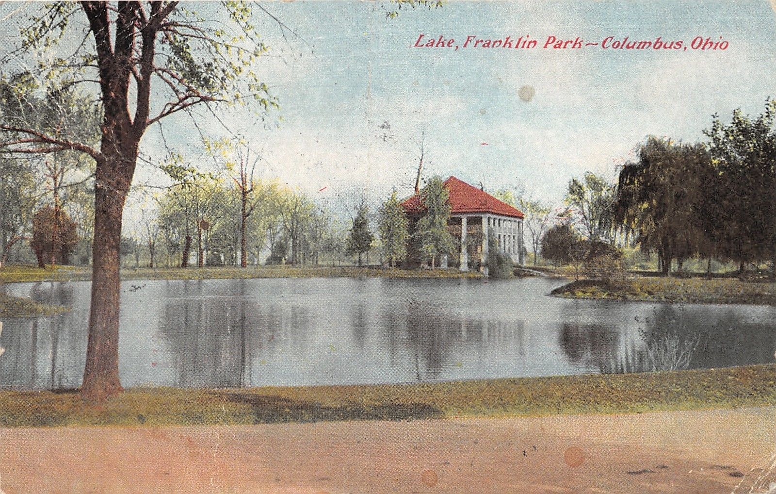 Columbus Ohio~Franklin Park Lake~Pavilion on Lake's Edge~c1910 Postcard