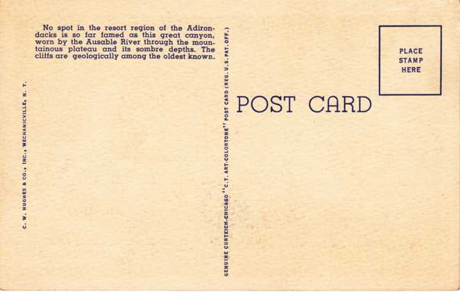 Column Rock. Ausable Chasm, Adirondack Mountains, New York. Standard sized linen post card. The Curt-Teich Dating Guide assigns 8B-H1505 to 1948. Very good condition.