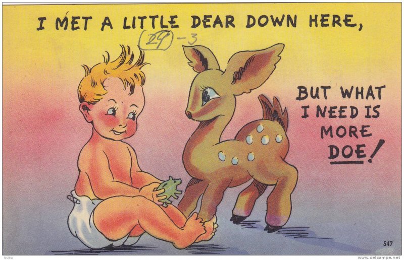 Comic, Baby & Deer, 1910-1920s :: Antique (Vintage) Original Postcard, Standard Size (3.5 by 5.5), Litho, EX.