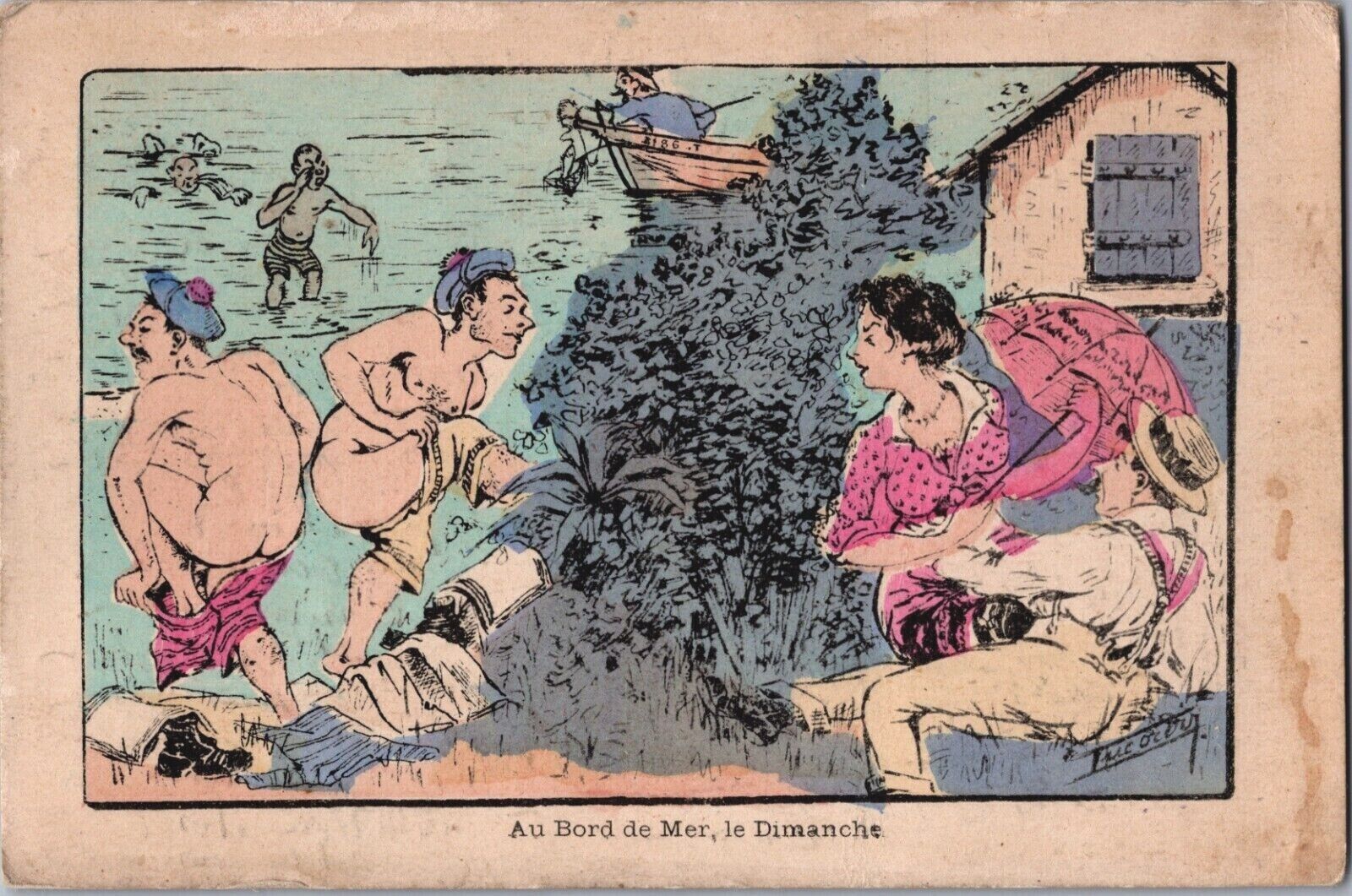 Comic Beach Au Bord de Mer, le Dimanche Vintage Postcard 02.99