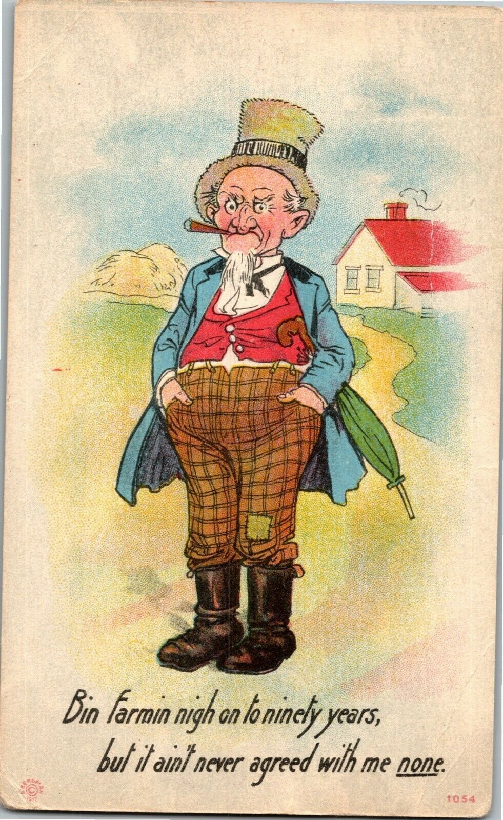 Comic, Been Farming 90 Years, It Never Agreed With Me Vintage Postcard E01
