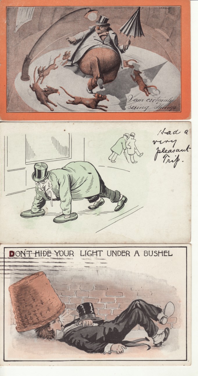 COMIC DRINKING HUMOR / CONFUSED DRUNK 3 Postcards