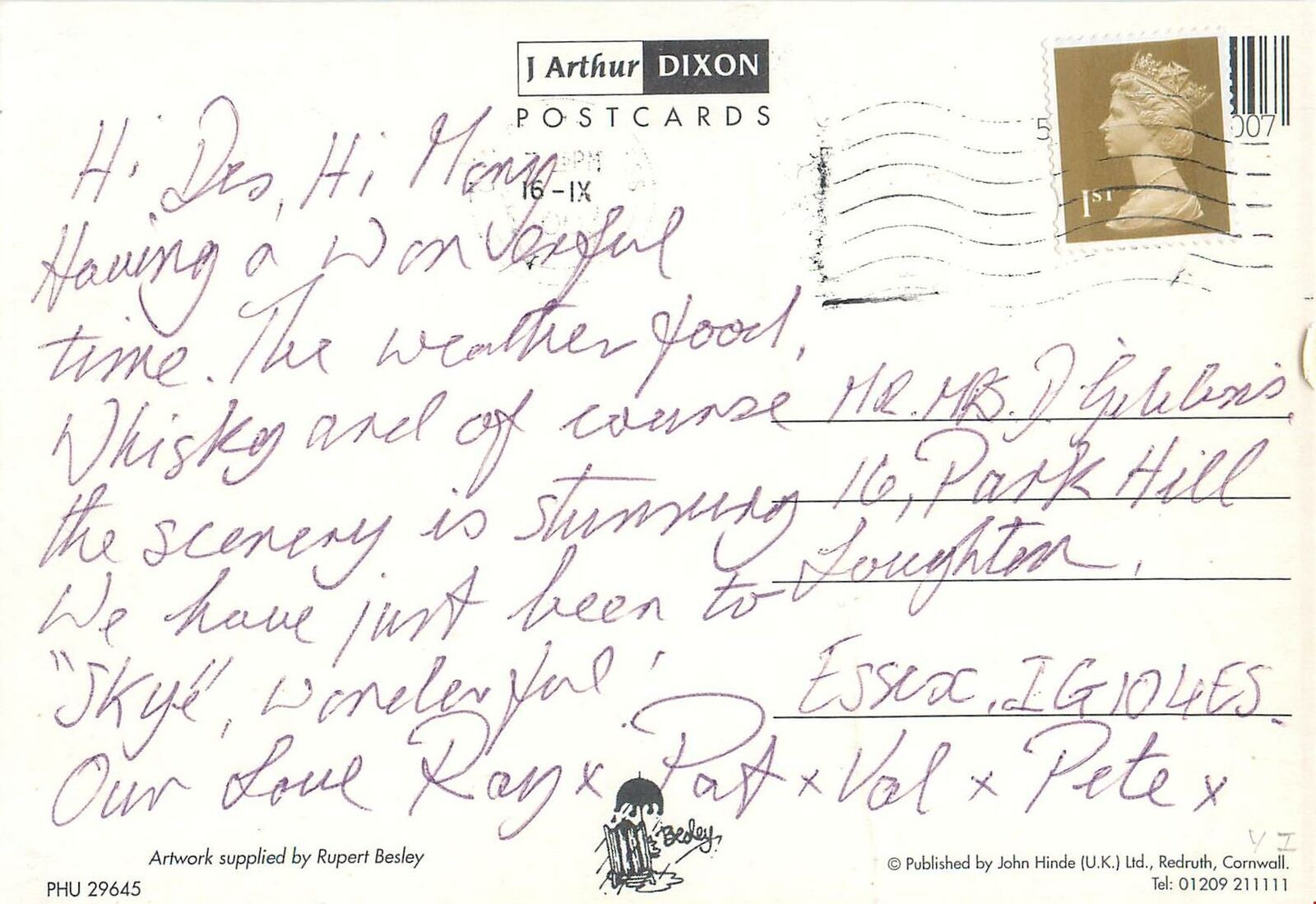 Comic funny animal Postcard seals artwork by Rupert Besley