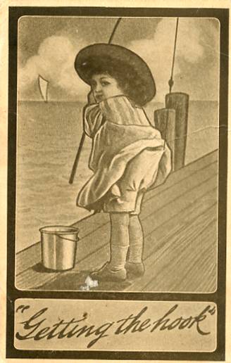 Comic - "Getting the Hook" E, PU, DB, WOB, PM 1910 Grading of Postcards MINT (M): Perfect condition, no apparent blemishes, flaws, postally unused, may have some writing on back. NEAR MINT (NM): Like new, image i ... Read More