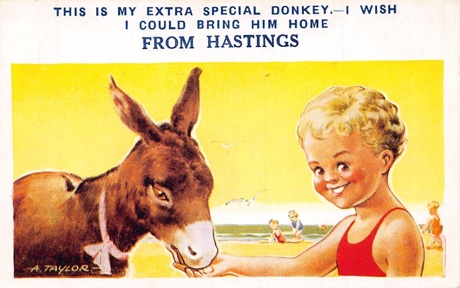 Comic Humor Beach Boy Feeding Extra Special Donkey From Hastings postcard
