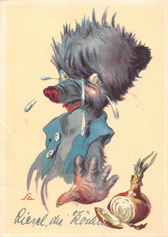 Comic Humor Humanized Teddy Bear Crying Onion Cutting vintage postcard B761 This item is listed via xdm.it software