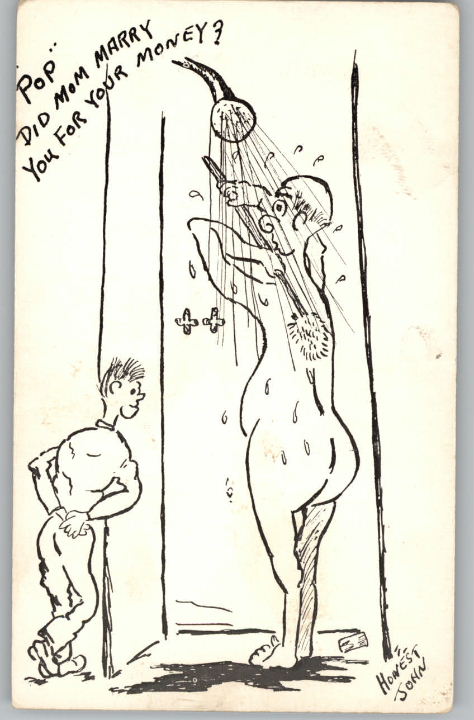 Comic Postcard-Married for Money? Father Showering
