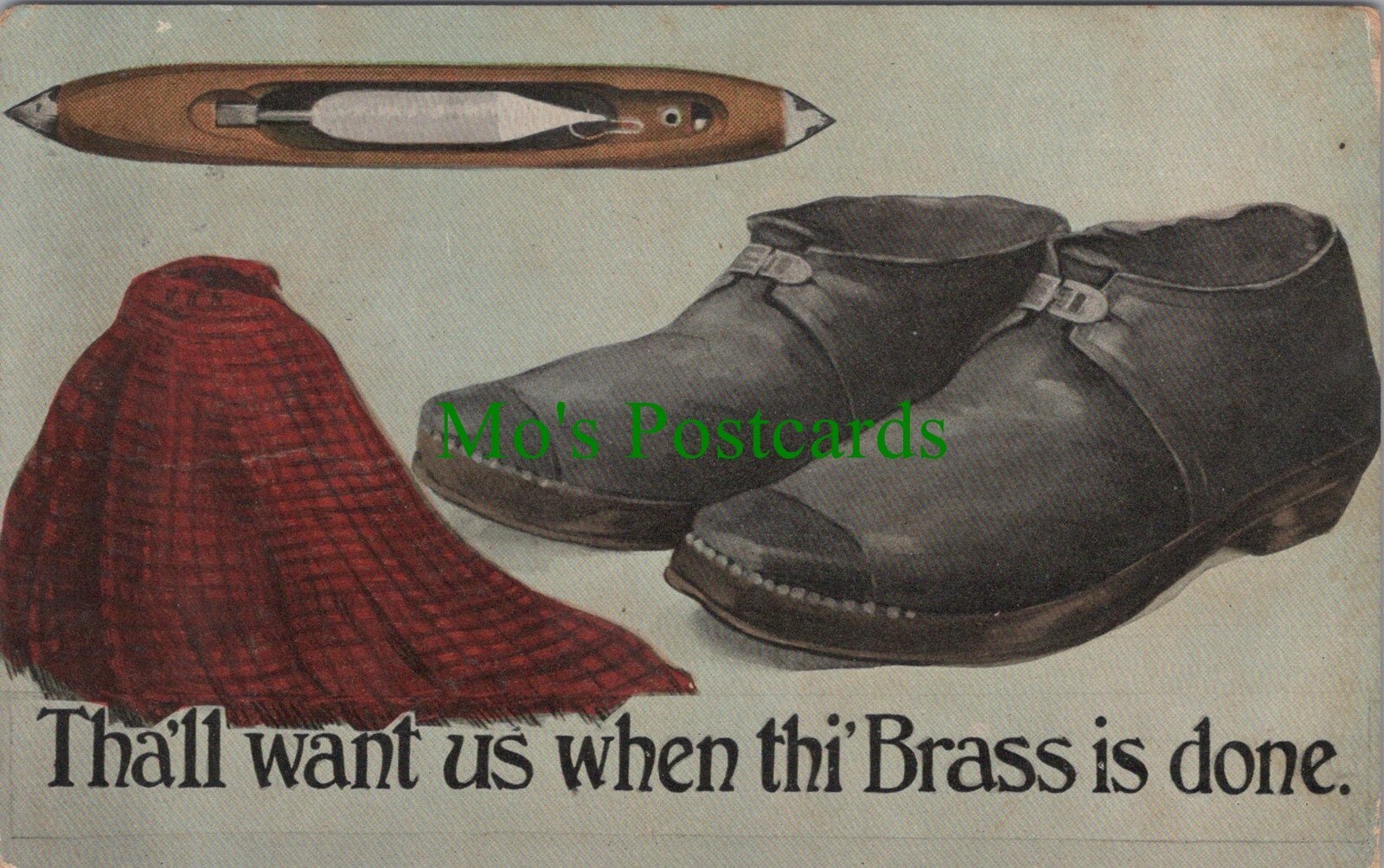 This is a Comic Postcard - Tha'll Want Us When Thi' Brass Is Done Publisher: Valentine's Postcard size: Standard. Posted in 1910 If a postcard has any obvious defects they will be mentioned within this product description. Please use our image magnifier to make your own assessment on the condition. Postcard defect(s) : Slight crease at the centre of the right hand edge. Slight corner rubbing. All of our postcards are posted to you inside a plastic sleeve and a board backed envelope which will be marked 'Please do not bend'. The 'Mo's Postcards' watermark does not appear on the actual postcard'. Mo's Ref No: SW8598 for Comic Postcard - Tha'll Want Us When Thi' Brass Is Done