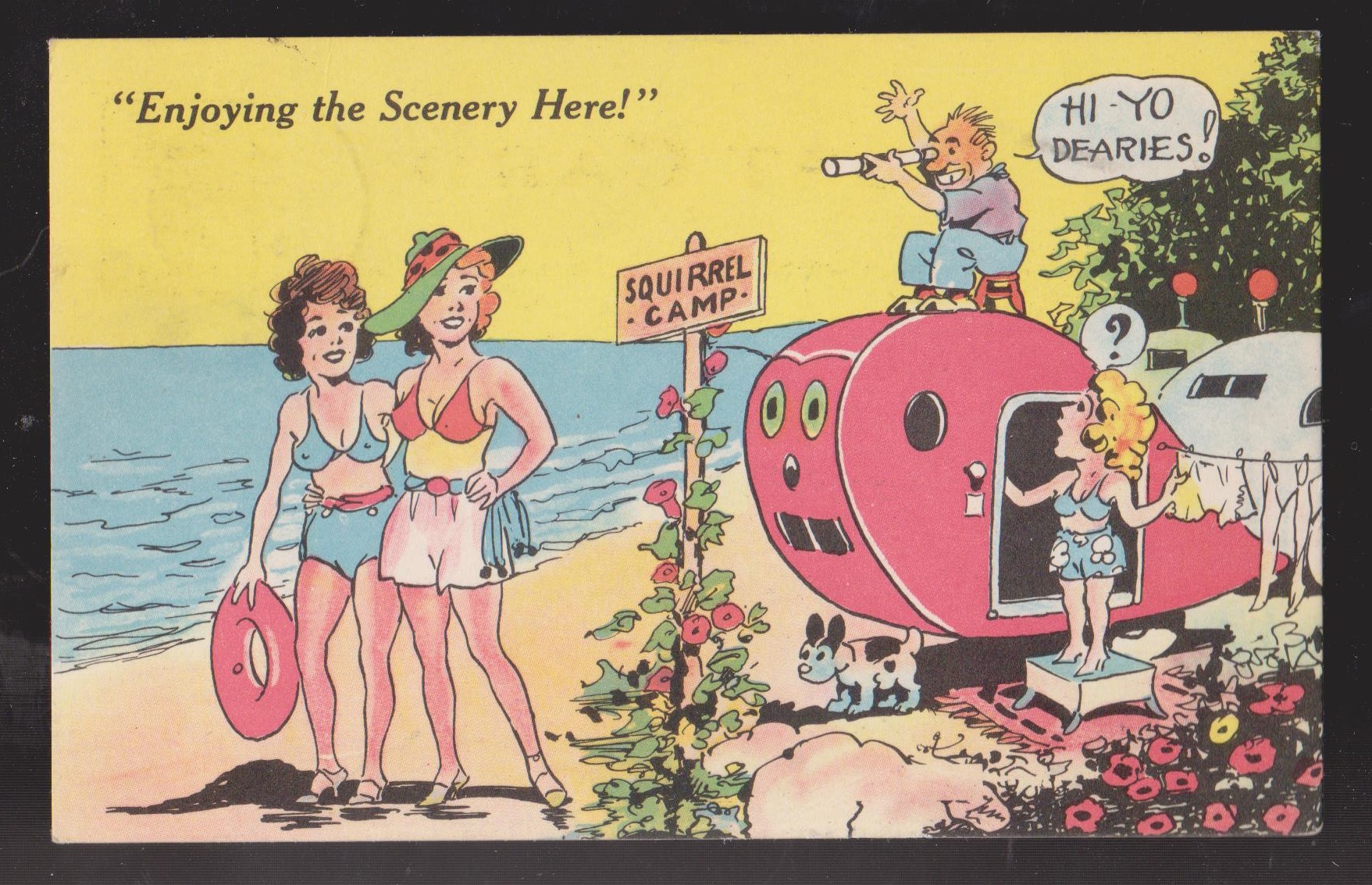 Comic Postcard - Women On Beach Man With Telescope - Used 1951