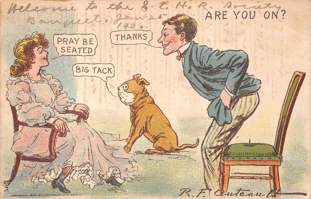 COMIC PRANK ROMANCE DOG ARTIST SIGNED R.F. OUTCAULT POSTCARD (1905)