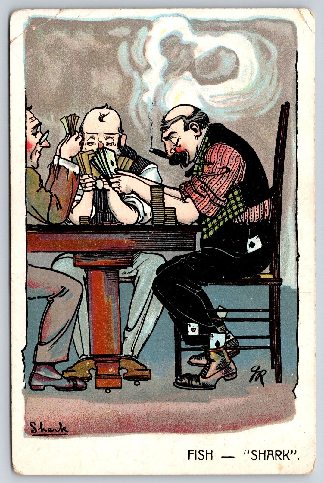Comic Pun~Card Shark Playing Fish Card Game~Hidden Cards~c1910 Vintage Postcard