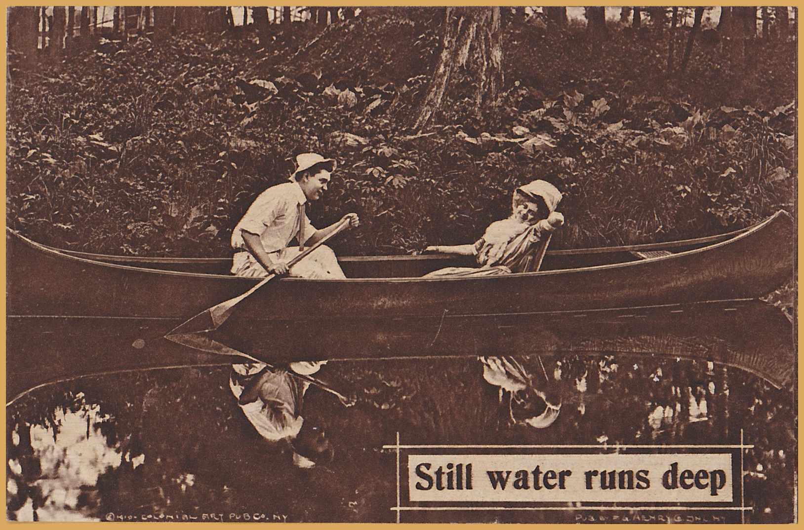 Comic-"Still Waters Run Deep" Happy couple in Canoe-1910