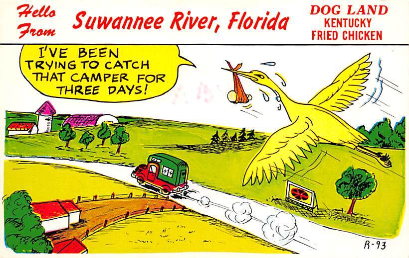 Comic Suwannee River, Florida USA Postcard View Images, Grade: 1, , Size: Regular Size Postcard - approximately 3 1/2 inch x 5 1/2 inch (9 CM x 14 CM) Grading Scale: Grade 1 = Perfect corners Grade 2 = Very Min ... Read More