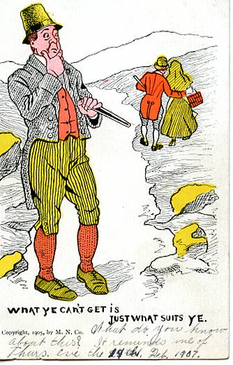 Comic - "What ye can't get..." --- VG, UDB, PU, WOB, WOF, COP 1905, PM 1907 Grading of Postcards MINT (M): Perfect condition, no apparent blemishes, flaws, postally unused, may have some writing on back. NEAR MINT ... Read More