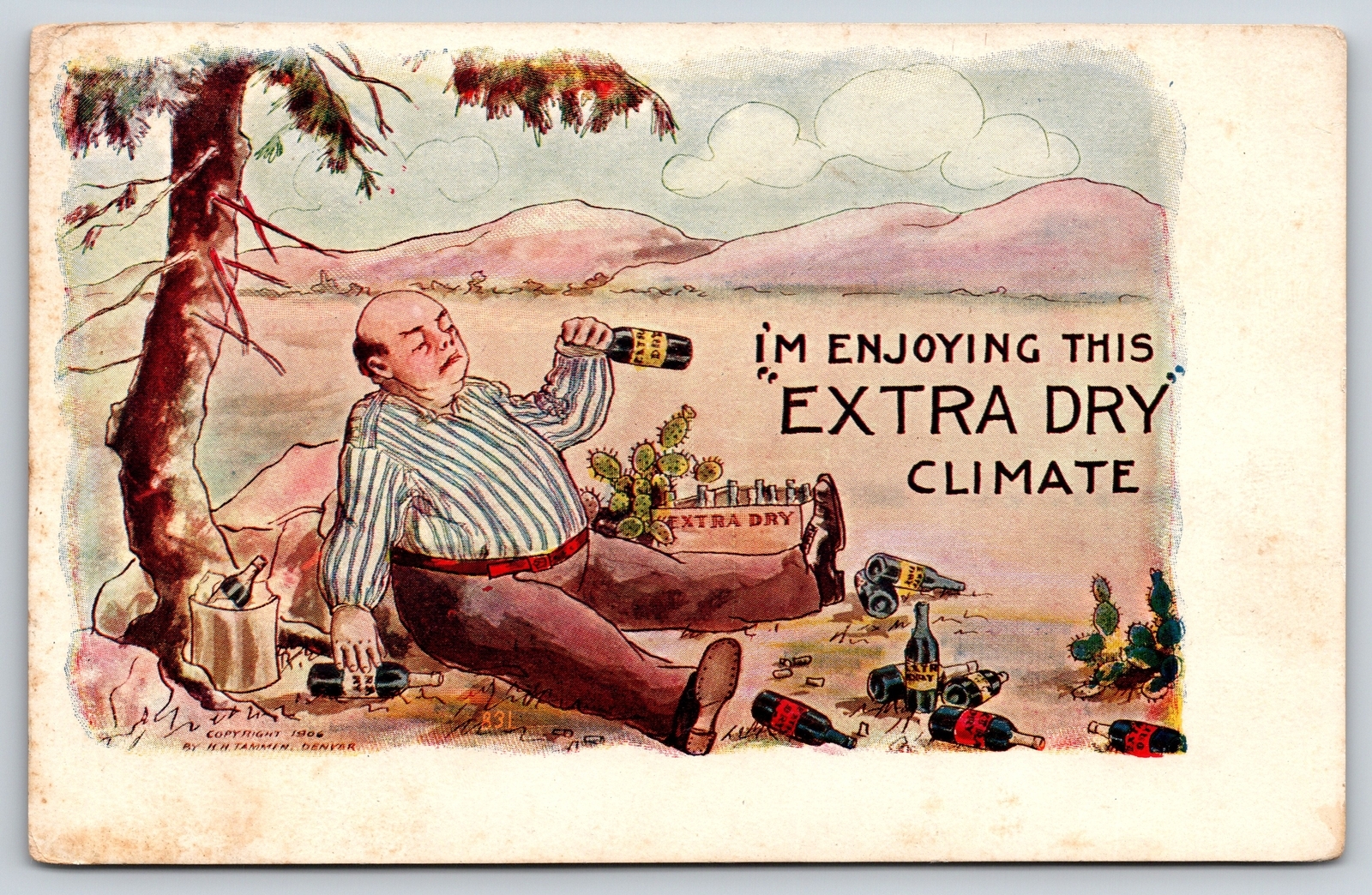 Comics~Enjoying This Extra Dry Climate~Man Drinking Wine In Desert~Vintage PC