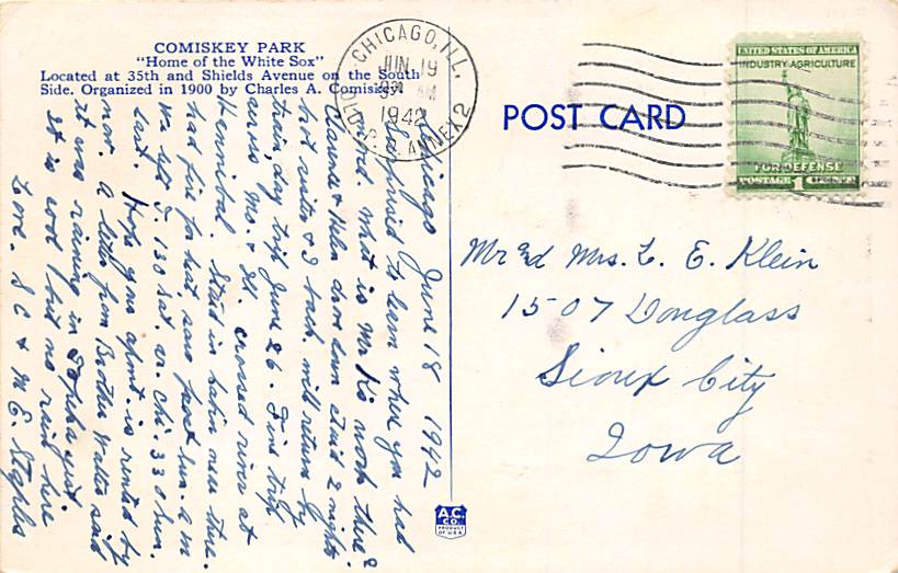 Comiskey Park, Chicago, IL, USA Baseball Stadium Postcard spo023A079: Comiskey Park, Chicago, IL, USA Baseball Stadiums, Base Ball Stadium, Postcard Year Date of Postcard, or Postal Used / Year Used: 1942 Grade: ... Read More