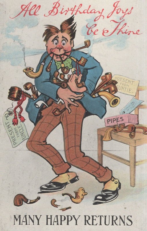 zx505 As per the title and image and dates circa 1908-1910 - surely the ultimate mad pipe collector Edwardian postcard of its kind - unused bar small places this is great condition.