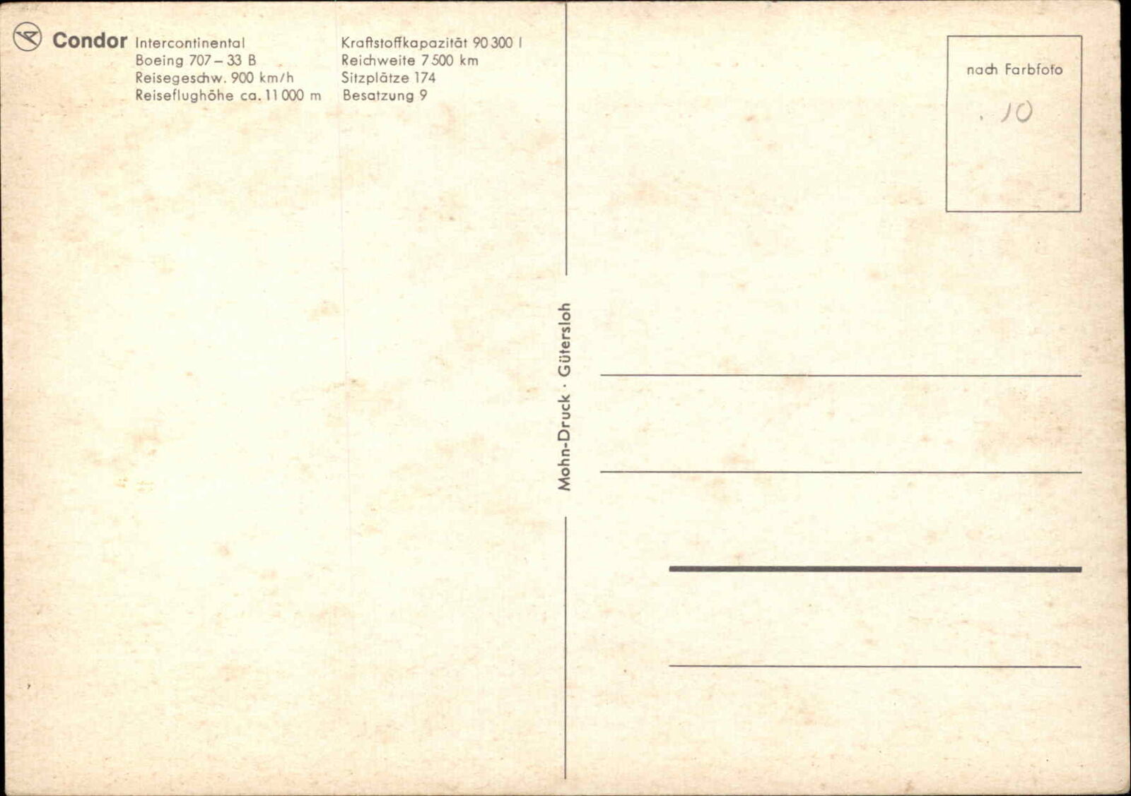 Condor Intercontinental Boeing 707-33B Airplane Vintage Postcard