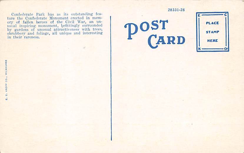 Confederate Monument Confederate Park Jacksonville FL Grade: 2 Size: Regular Size Postcard - approximately 3 1/2 inch x 5 1/2 inch (9 CM x 14 CM) Grading Scale: Grade 1 = Perfect corners Grade 2 = Very Minimal ... Read More