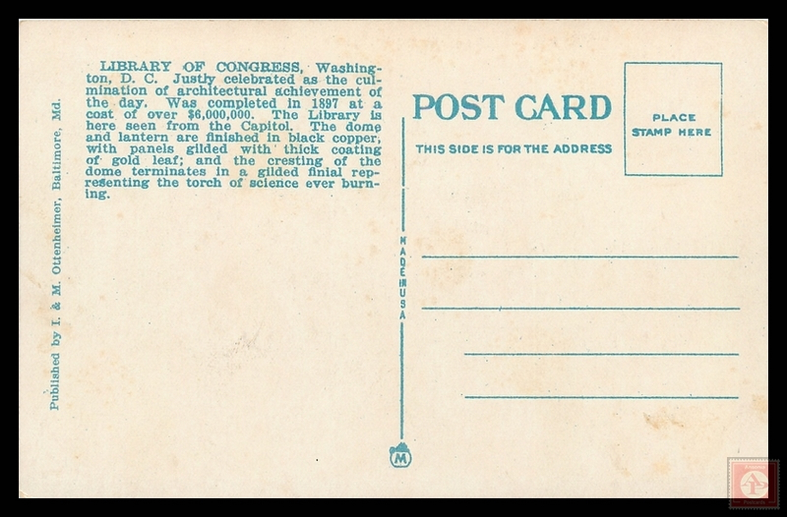 Some scans of postcards result in colored streaks which are a result of the error in scanning and not a fault of the postcard.