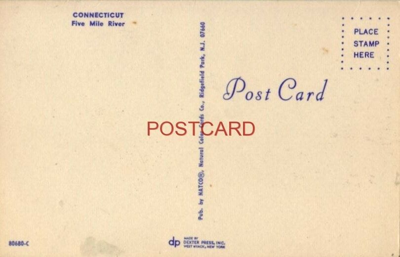 CONNECTICUT - FIVE MILE RIVER - boats in harbor Product Description Unused Postcard That Has Not Been Postmarked. Condition: Very good condition with slight wear along edges and corners. Note: in most pictures ... Read More