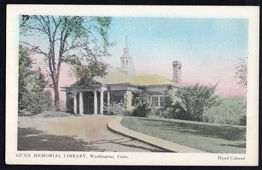Connecticut WASHINGTON Gunn Memorial Library - Hand Colored - White Border