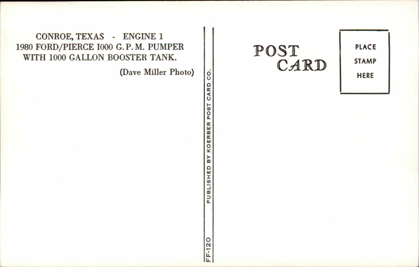 Conroe TX Engine 1 Fire Department Engine Pumper Truck Vintage Postcard
