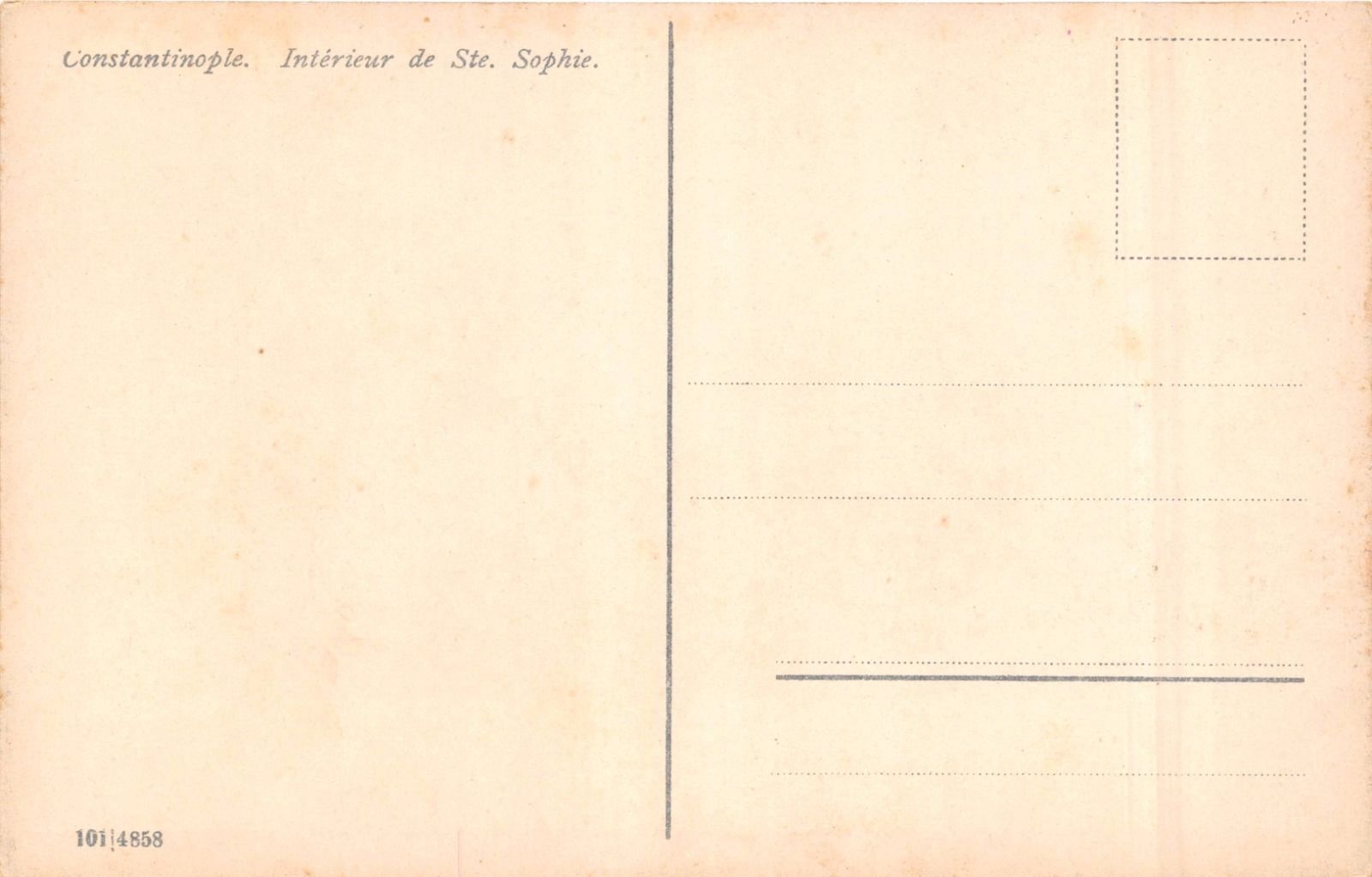 CONSTANTINOPLE TURKEY INTERIEUR de STE SOPHIE POSTCARD Product Description Buy multiple postcards at one time and pay only one shipping/handling charge! Foreign purchasers-all regular size postcards ship in rigid ... Read More