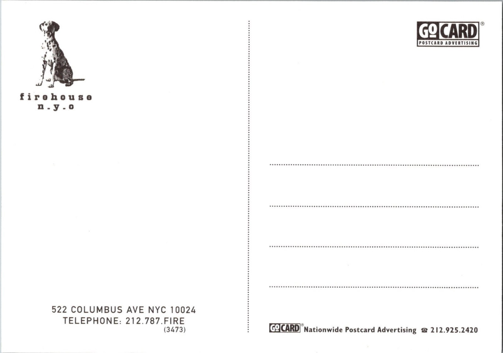 Continental Advertising Postcard- Firehouse NYC Restaurant CD18