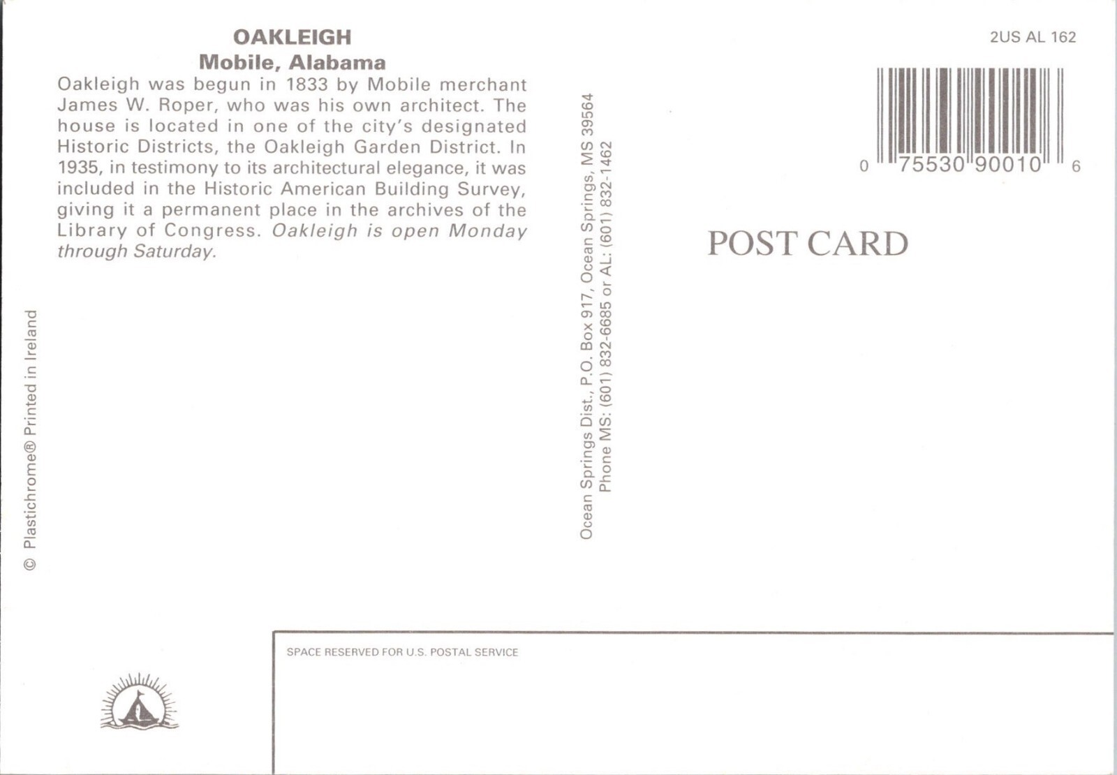 Continental Postcard Oakleigh Mobile, Alabama CF3