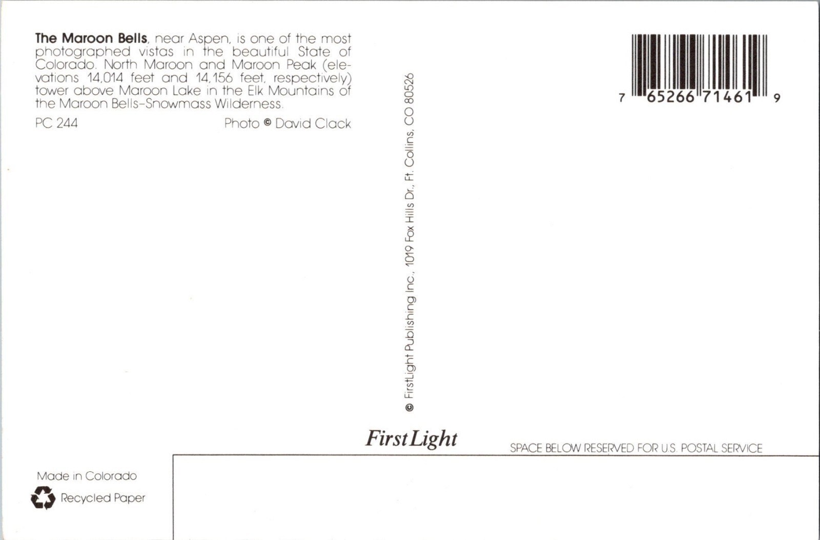 Continental Postcard The Maroon Bells Aspen, Colorado CF5